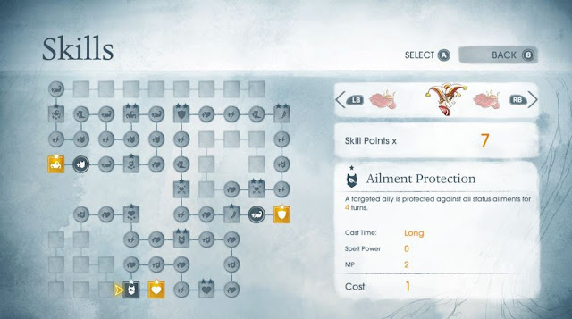 For leveling up, Child of Light offers us skill trees. Each character has
