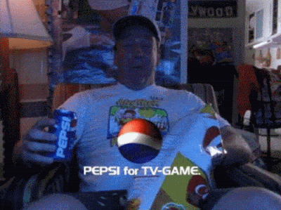 stereotype stuffs his face and says things like “Pepsi for TV-Game”. So that’s